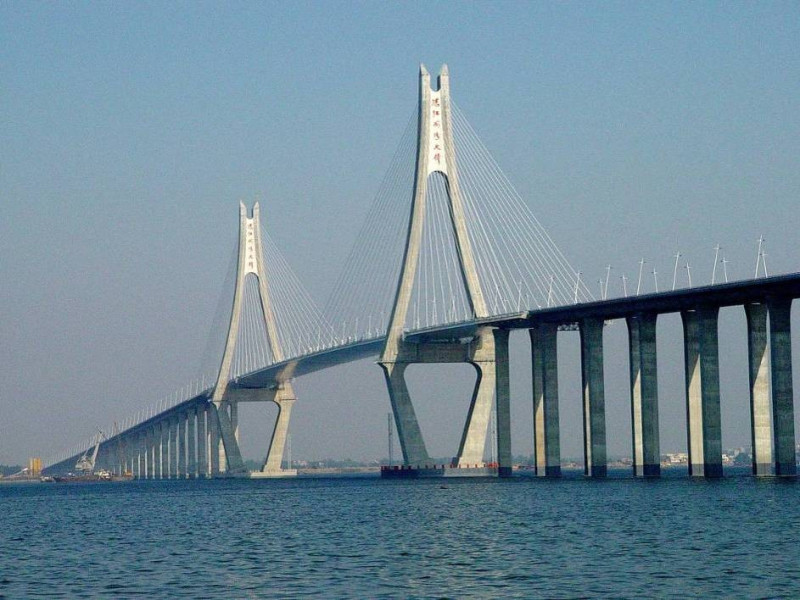 昂船洲大橋為主跨1018m的混合梁斜拉橋,跨越通過繁忙的葵涌貨柜碼頭的藍巴勒海峽。主梁為雙幅鋼箱梁,雙獨柱塔四索面,設計荷載為公路雙向8車道。該橋于2009年12月20日正式通車。該橋荷載試驗由橋梁業(yè)主(也是管養(yǎng)單位)——香港路政署負責實施,咨詢公司與相關大學提供技術支持。